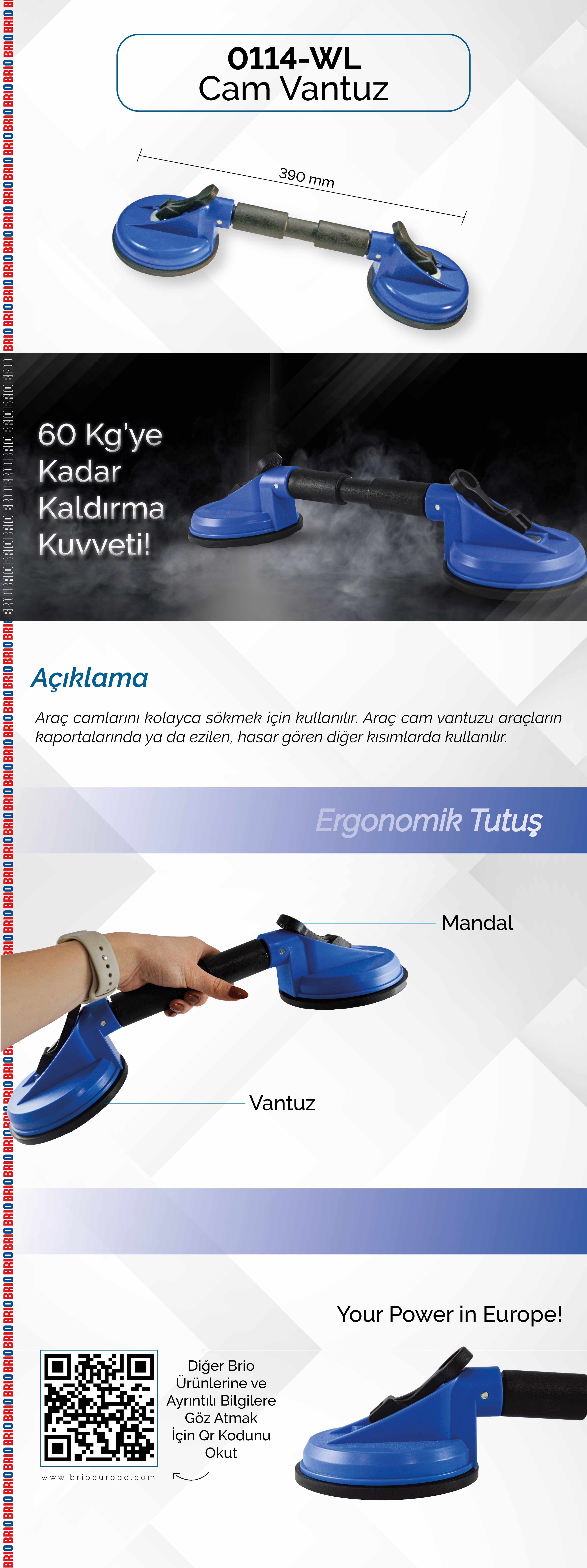 Araç camlarını kolayca sökmek için kullanılır. 60 Kg’ye kadar kaldırma kuvvetine sahiptir.