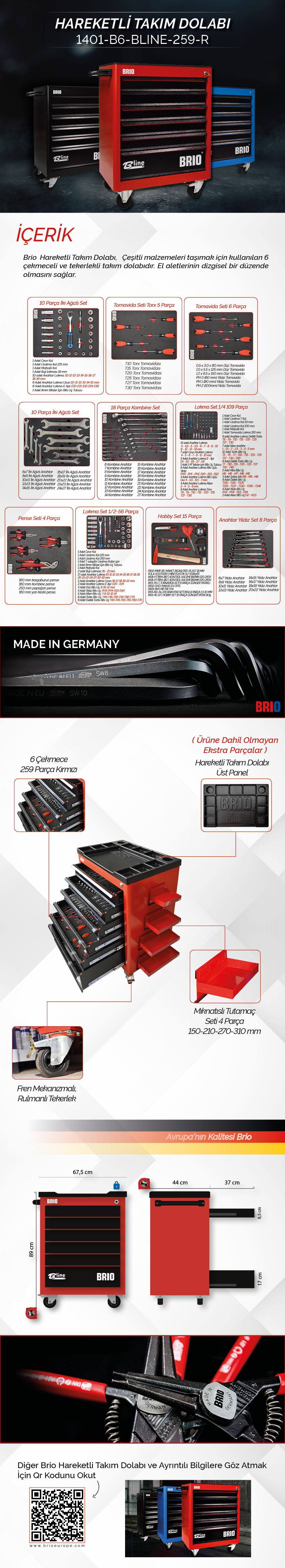 BRIO Hareketli Takım Dolabı 6 Çekmece Bline 259 Parça Kırmızı Dolu