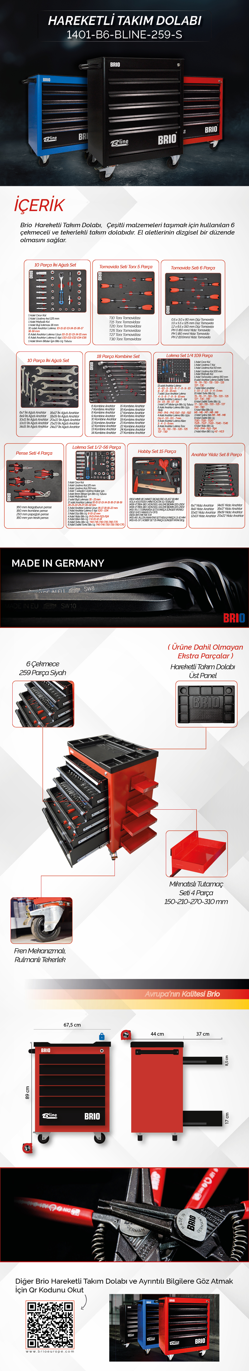 BRIO Hareketli Takım Dolabı 6 Çekmece Bline 259 Parça Siyah Dolu