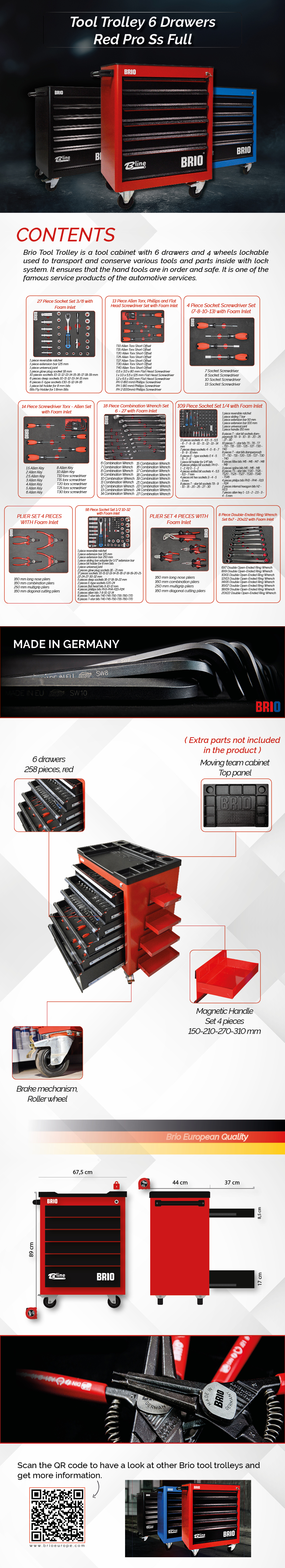 258 PARÇA 6 ÇEKMECE PRO SS 258 PARÇA KIRMIZI HAREKETLİ TAKIM DOLABI