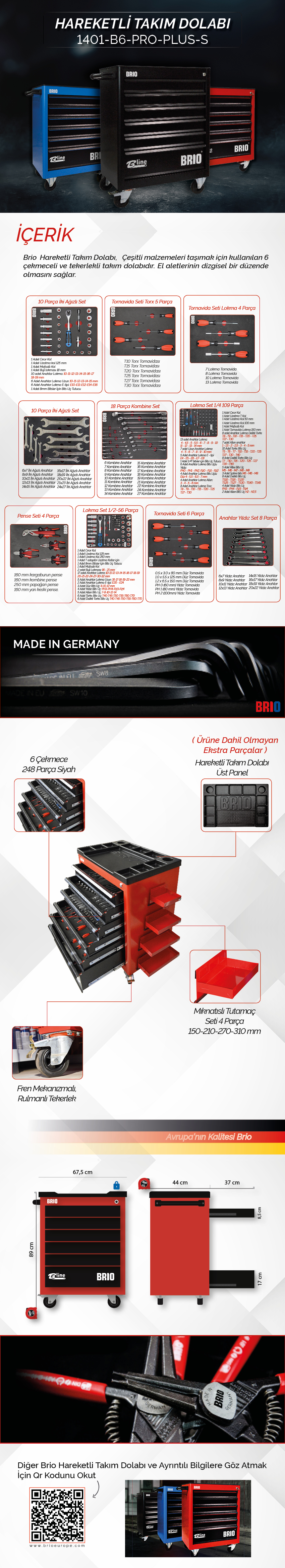 BRIO Hareketli Takım Dolabı 6 Çekmece XL 256 Parça Siyah Dolu