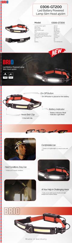 LED BATTERY POWERED LAMP SLIM HEAD 450 LM