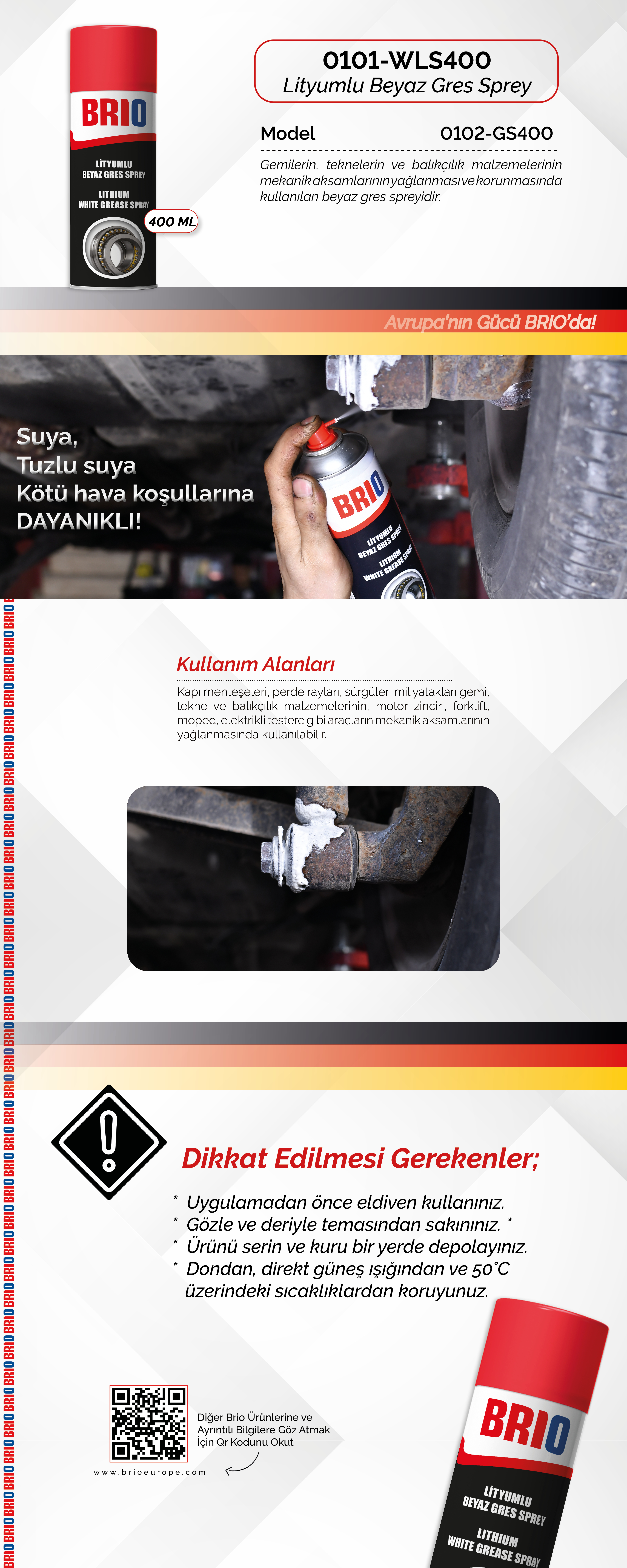 Gemilerin, teknelerin ve balıkçılık malzemelerinin mekanik aksamlarının yağlanması ve korunmasında kullanılan beyaz gres spreyidir. Sürekli kötü hava şartlarına maruz kalan parçaların oksidasyon yapmasını engellemek için kullanılabilir. Suya, tuzlu suya