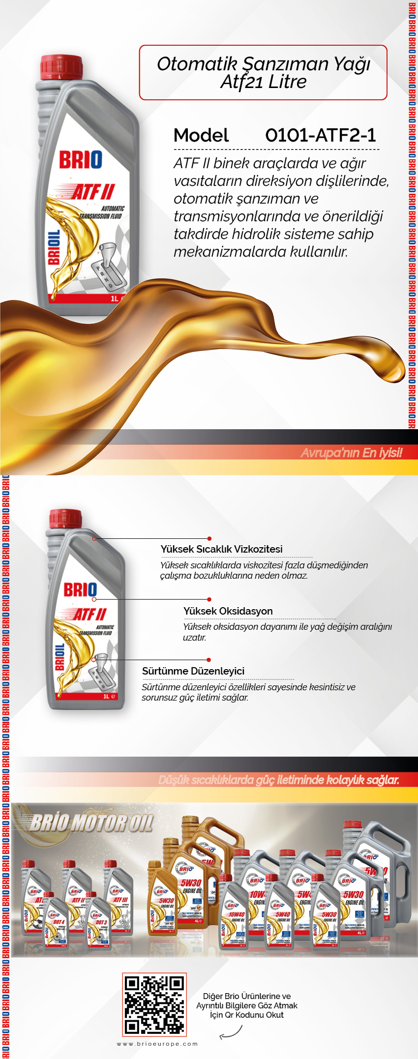 viskozitesi fazla düşmediğinden çalışma bozukluklarına neden olmaz. Düşük sıcaklıklarda çok kalınlaşmaz ve güç iletiminde kolaylık sağlar. Yüksek oksidasyon dayanımı ile yağ değişim aralığını uzatır. Sürtünme düzenleyici özellikleri sayesinde kesintisiz