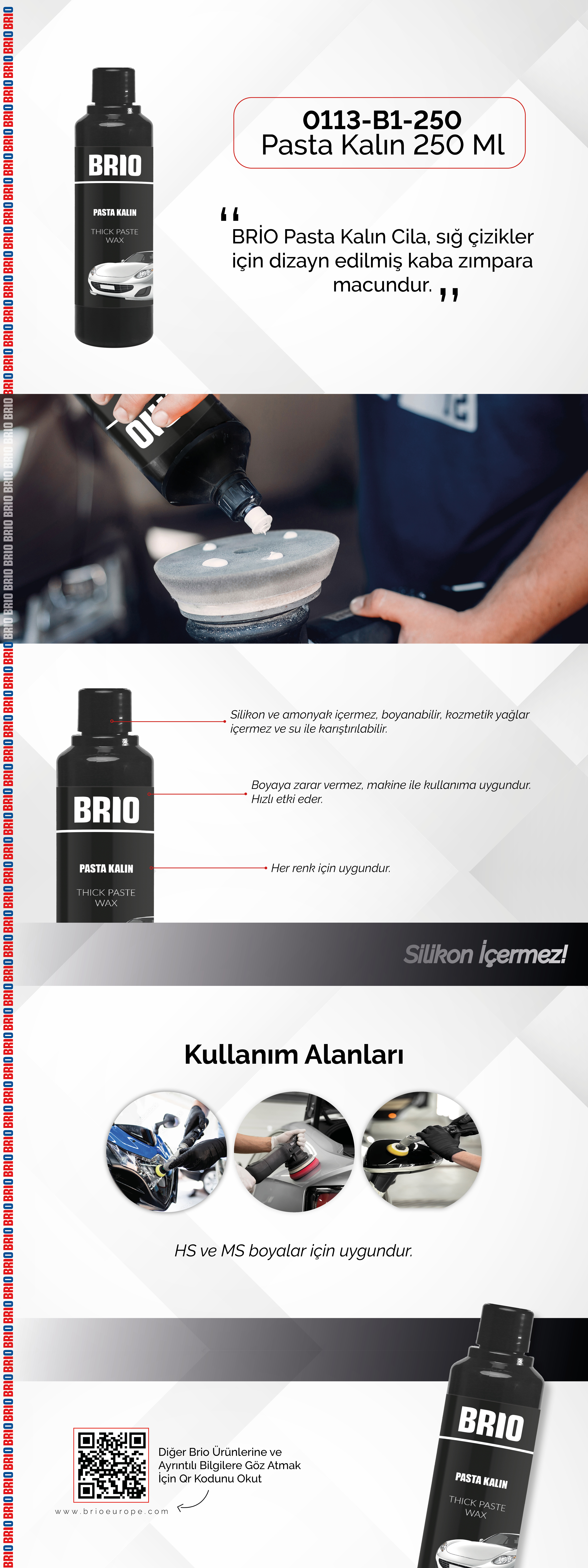 derin çizikler için kaba zımpara macundur. Her renk için uygundur. Silikon ve amonyak içermez, boyanabilir, kozmetik yağlar içermez ve su ile karıştırılabilir. Boyaya zarar vermez, makine ile kullanıma uygundur. Hızlı etki eder.