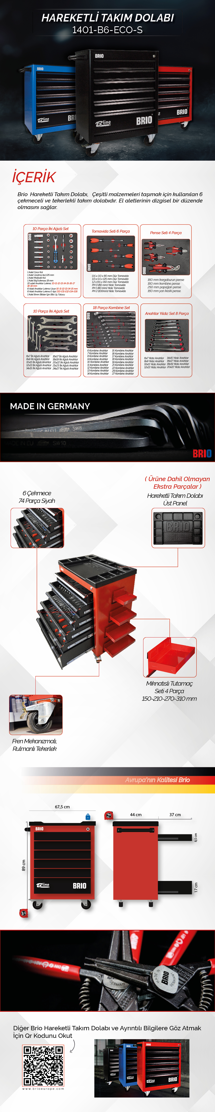 The workshop trolley with 6 drawers and roller wheels to carry various tools. It contains the following products;