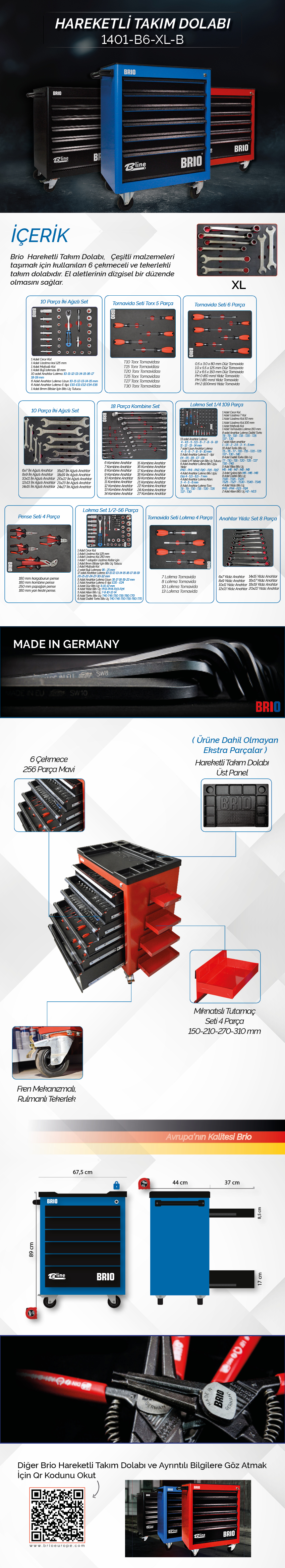 The workshop trolley with 6 drawers and roller wheels to carry various tools. It contains the following products;