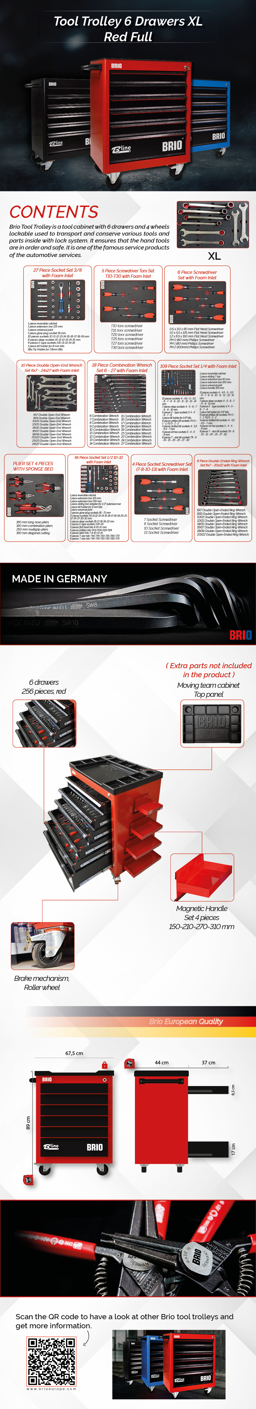 The workshop trolley with 6 drawers and roller wheels to carry various tools. It contains the following products;
